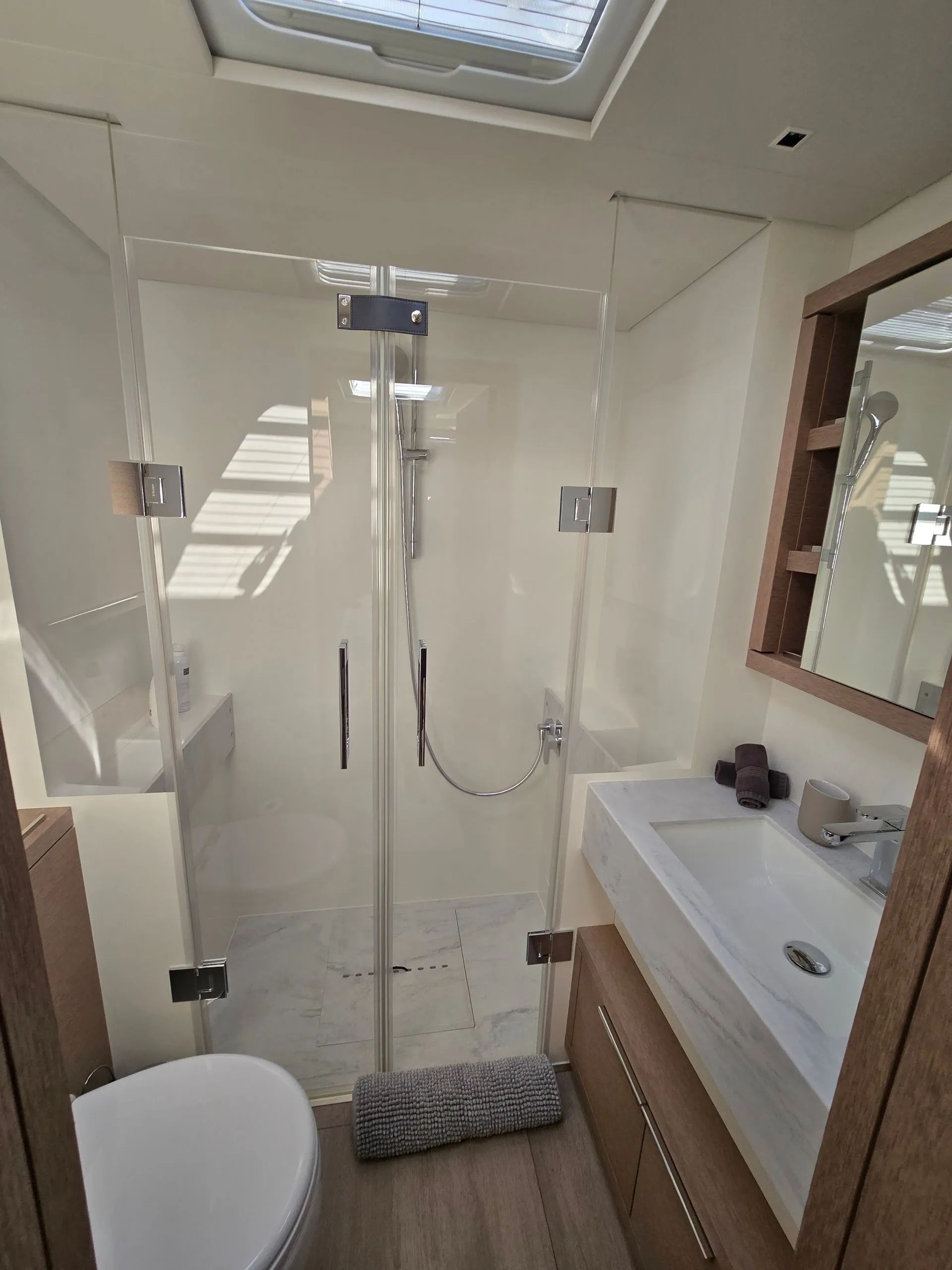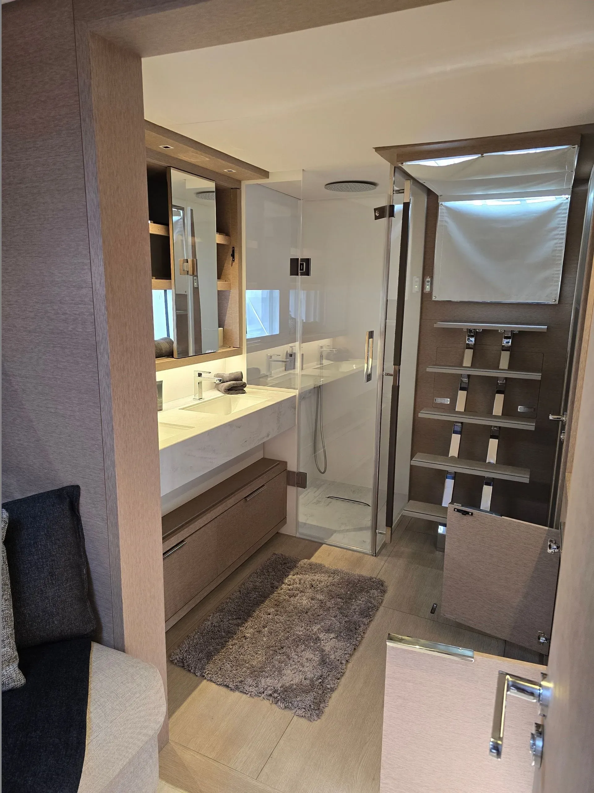 TRIWING ENDOR's interior invites you to unwind in a space that masterfully blends contemporary design with timeless teak finishes. Expansive windows throughout allow natural light to pour in, creating a bright and airy atmosphere that enhances the yacht's elegance. After a day of exploration, retreat to one of her spacious, cozy cabins, each thoughtfully appointed with private en-suite bathrooms, ensuring you feel pampered and refreshed for the next day's adventures.