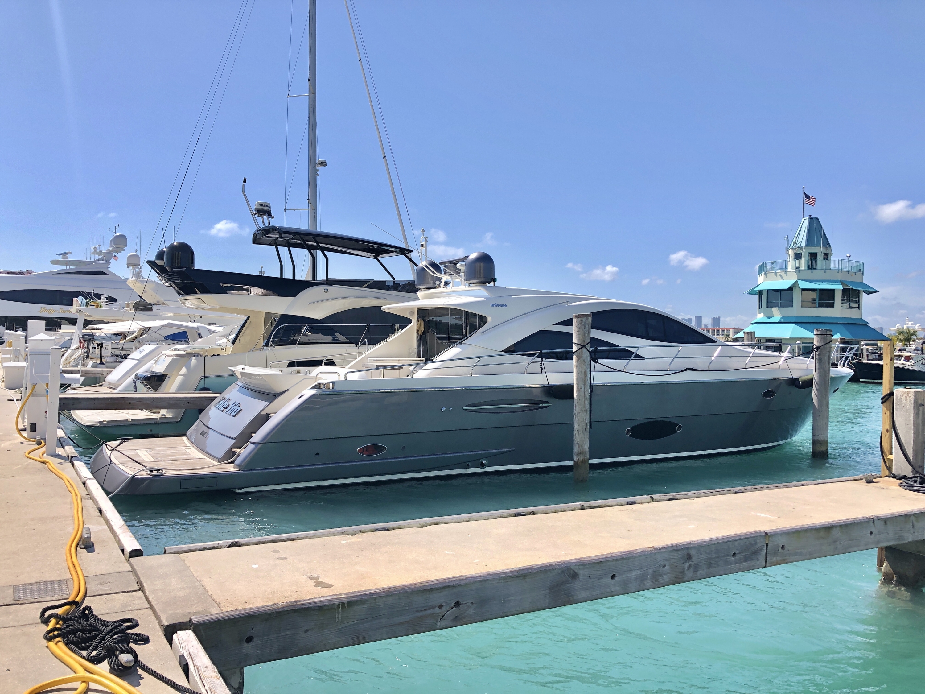 This Uniesse 70 Crewed Motor Yacht is the ideal motor yacht for luxurious day charter in Miami. She is the perfect boat for a day out on the water.This 70ft yacht can cruise with up to 12 guests. Her spacious flybridge and aft deck provide spacious areas for al fresco dining and entertaining! In the front is a large couch that can seat up to 8 people facing forward who can enjoy the cruising at high speeds. There is also an lounge with table that can fit several people comfortably.
