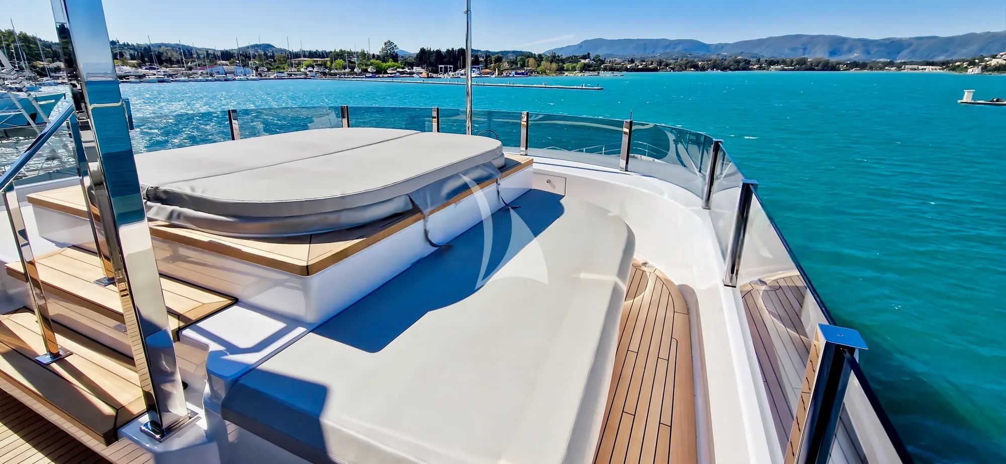 Your days naturally gravitate upward to the flybridge, where the covered lounging area turns into your favorite observation deck as Cannes' new and old ports come into view. Dip into the jacuzzi with a chilled glass of Rosé and let the coastline do the entertaining, then swap to the well-appointed sun beds on the flybridge aft or the foredeck when you want pure sunshine with the open sea behind you. When the light turns golden, your crew sets a sumptuous feast on the sky deck’s alfresco dining area, serving Bouillabaisse, Boeuf Bourguignon, and more while anchored near the colorful Port Grimaud. Start the next morning with breakfast by the bow, watching the horizon brighten as the Riviera wakes up.