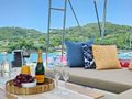 Be greeted by her vibrant interior embellished with light-wood and off-white furnishings, high-quality upholstery, as well as classy inner liners. She highlights three queen-sized cabins built with private bathrooms specially designed to deliver optimum comfort throughout your charter.