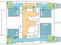 Accommodation for 8-10 guests on this bareboat catamaran is provided in: