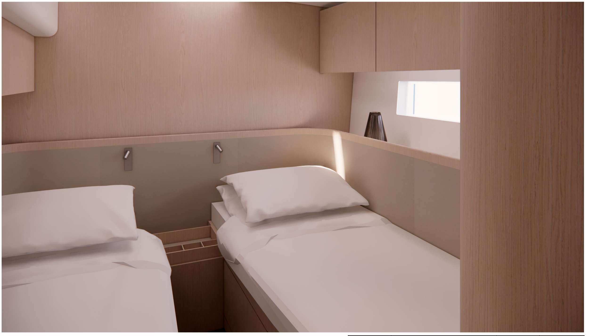 Cabin Configuration: 1 Double Cabin, 2 Twin Cabins