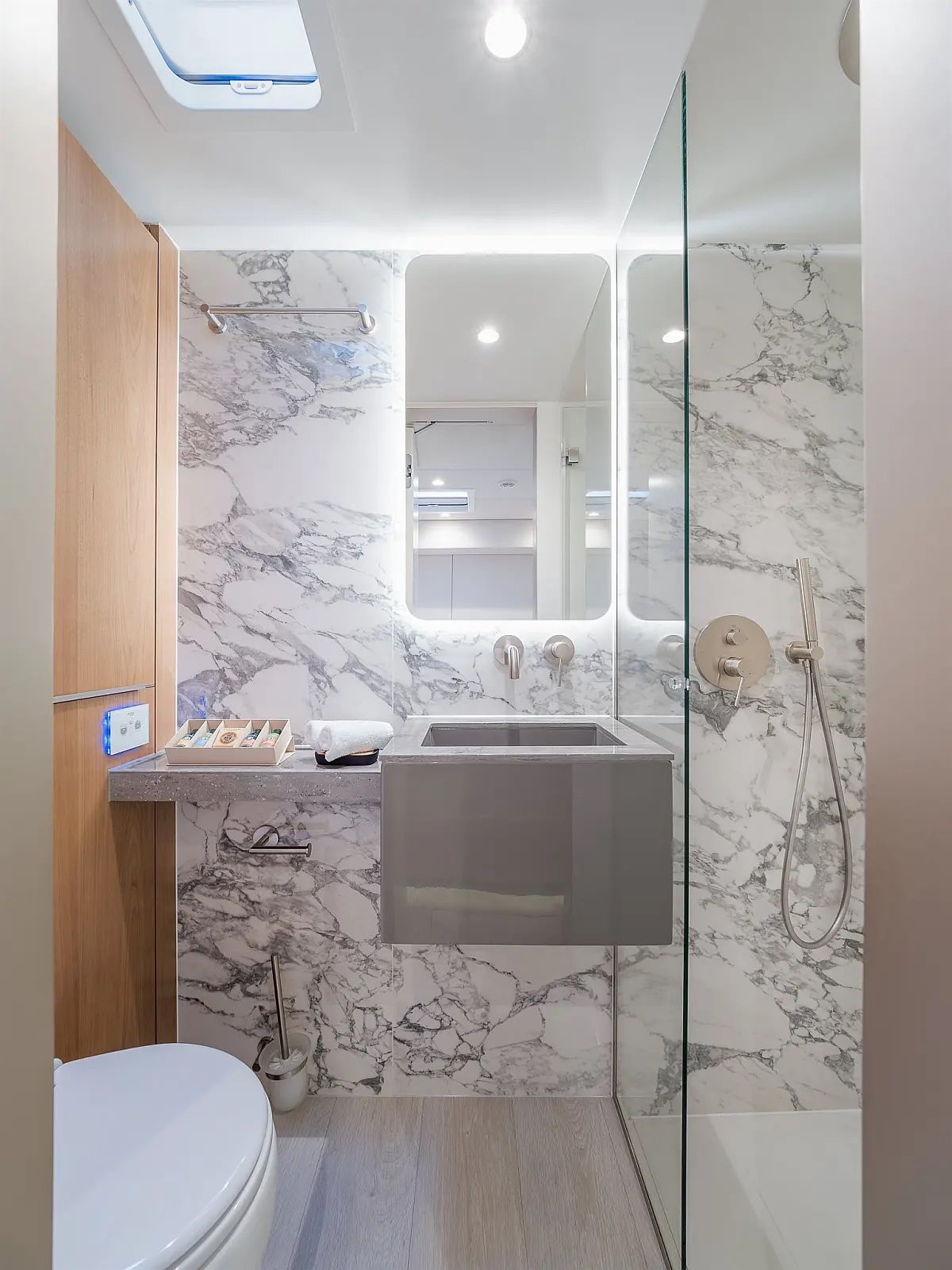 At the bow, lounge on the spacious sunbeds or stretch out on the net trampolines, basking in the warmth of the morning sun while the endless azure sea stretches before you. ZARA’s thoughtfully designed modern interior showcases teak accents and luxurious fabrics, creating an elegant and inviting ambiance. The indoor saloon provides a tranquil space for dining or relaxing to the gentle rhythm of the waves, while the smartly configured cabins, each with private ensuite facilities, ensure comfort and privacy for families and groups of friends.