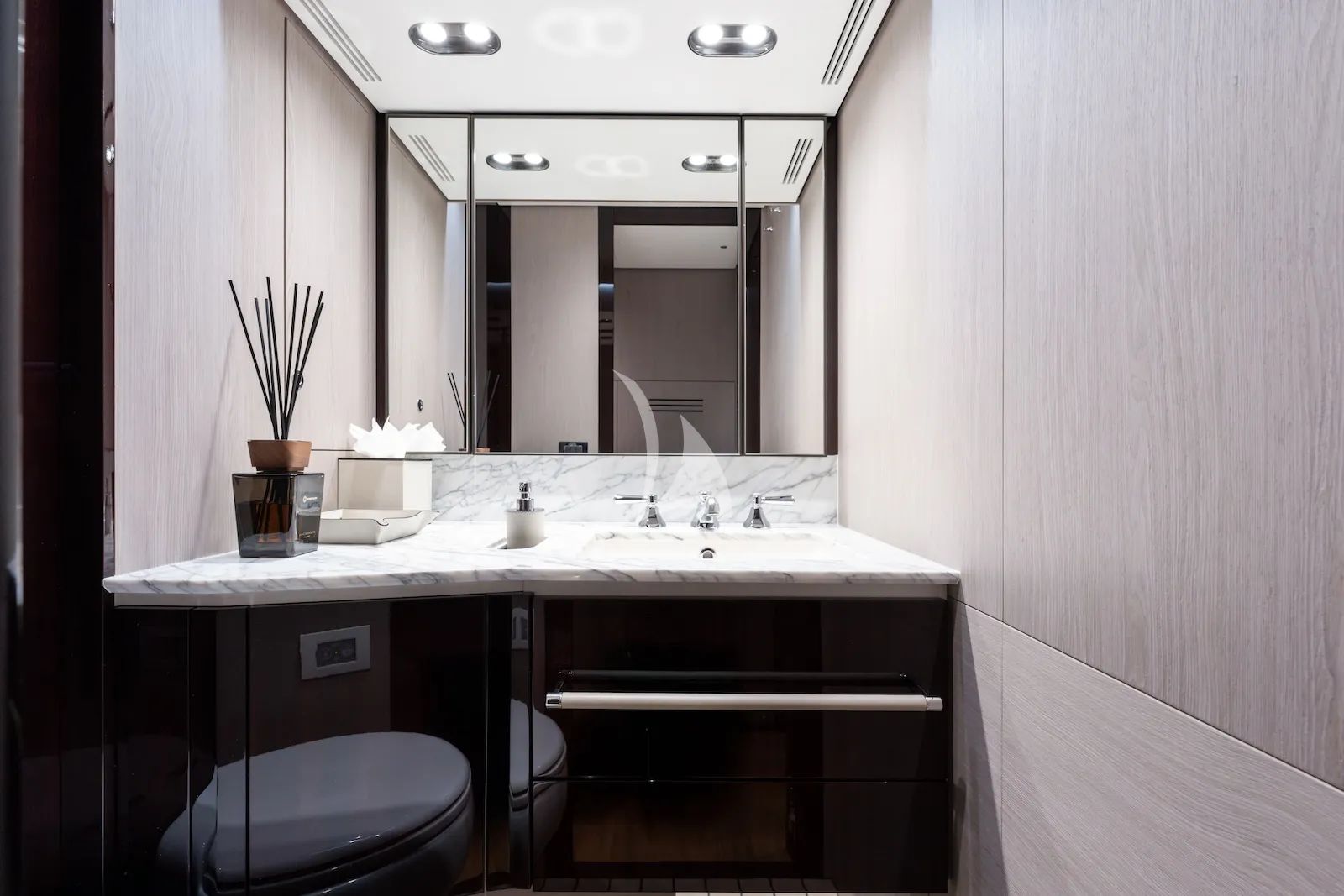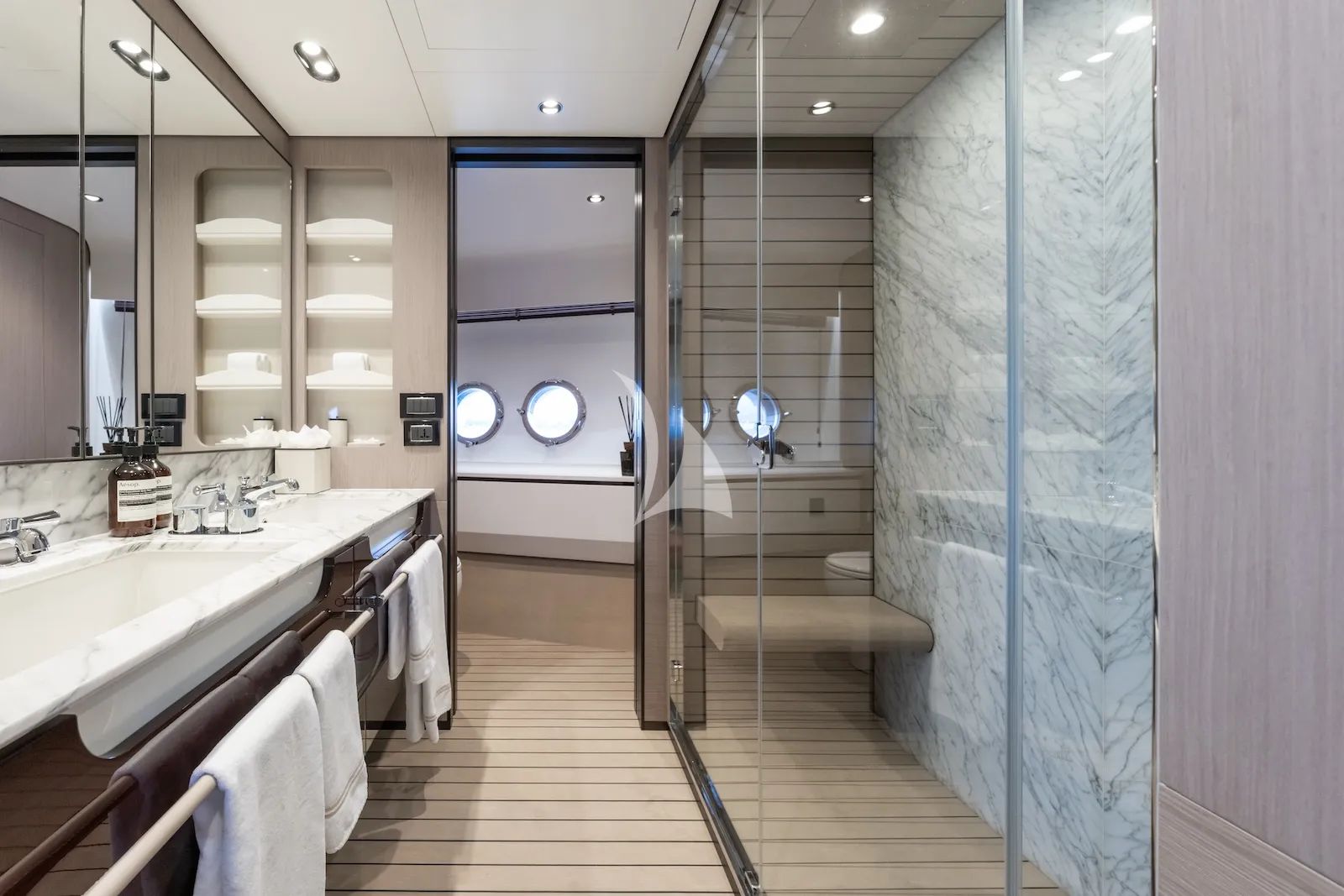 Step inside, and the mood shifts from open-air to quietly refined, with an interior that blends ultramodern and contemporary design in a way that feels bright, calm, and inviting. Large surrounding windows pull natural light through the main saloon, indoor dining area, and galley, keeping everything airy from morning through late afternoon. After water-filled hours, the spacious premium queen cabins with private bathrooms give you the comfort you want, and the master cabin adds extra ease with a dedicated workspace beside a huge glass window and a five-star en-suite finished with a marble vanity area.