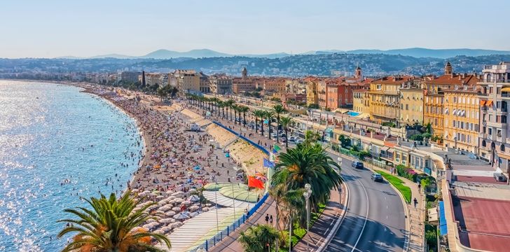 While you are in Nice, take a stroll along the palm-lined Promenade des Anglais and enjoy the views as you pass by landmarks such as the Hôtel Negresco and the art-deco Palais de la Méditerranée on one side, and the pebbled gray beach and sparkling open sea on the other. This is one of the chicest streets on the Riviera, with beach clubs, restaurants, designer shops, and hotels galore. There is always more to discover here, from the authentic French-Italian charm of Old Town's theatre, restaurants, and art galleries, to the designer shops and modern department stores such as Galeries Lafayette in New Town.