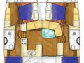Throughout the yacht the head room is generous (salon 6` 8` and cabins 6` 5`). The on board storage is enviable, and even items such a SCUBA tanks and guest suitcases, are well catered for.