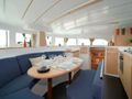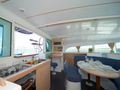 Simplicity reigns: the link between the interior and the exterior is of the utmost importance, this is why the galley becomes the logical connection between the saloon and the cockpit without blocking the way, and the large bay sliding door is the ultimate passageway from the inside to the outside, and the resulting visibility, appreciated on every Lagoon, is exceptional here: seated around the saloon table, or while at the helm, or relaxing in the cockpit, everyone is part of the activities on board.