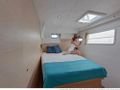 Her light varnish finish and use of white and grey accents add to the general feeling of airiness, and sliding hatches/doors provide privacy to her cabins below.