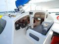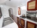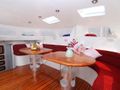 The saloon is very light and spacious with a u-shaped, custom built settee set around 2 tables. 10 Persons can sit here comfortably for breakfast, lunch or dinner, or you have the choice to sit outside in the cockpit which features one large table.