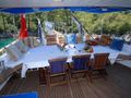 For exterior dining there are 2 dining tables, 1 on the deck and the other located aft, where everybody can enjoy their meals in comfort.