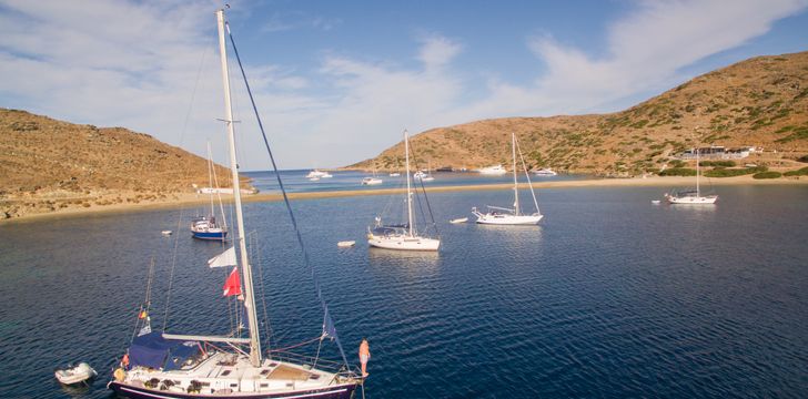 Kythnos is part of the Western Cyclades between Kea and Serifos in Greece. This stunning island is 56 nautical miles (104 km) from the harbor of Piraeus in Athens, where most Greek yacht charters begin. With more than 70 beaches, many of which are only accessible by boat, Kynthos is a sailor's paradise and must visit during any charter in the Cyclades.