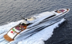 Fast, luxurious, modern: the Pershing 72 luxury motor yacht, accommodating up to 6 guests in 3 cabins, is ideal for crewed charters around Mykonos and the Greek Islands.